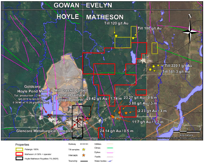 The Company is also exploring for gold, base metals and platinum group metals. Its gold portfolio includes the Hoyle-Matheson Royalties, Matheson JV and Pelangio properties